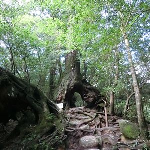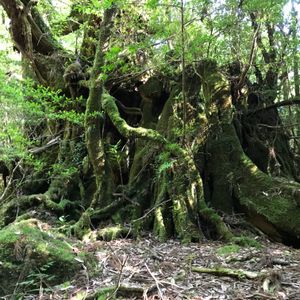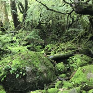 A typhoon was approaching, but miraculously, it cleared up. On the first day, I walked about 22 km and felt great doing it. Yakushima is mystical, and the air is fresh; I think it's worth visiting. The world of Princess Mononoke is all around, and it made me want to watch the movie again.