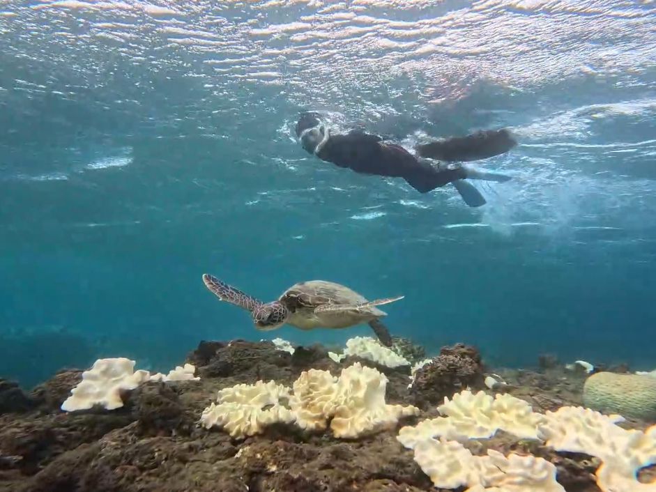 ウミガメにも出会うことができ、人を恐れていない様子で非常に近くで見ることができました。