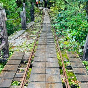 子どもは登山の道より、断然トロッコ道の方がきつそうでした。大人は道なき道や階段の方がきついのに、子どもはそんな道の方が好きでサクサク登って行くのは不思議でした。