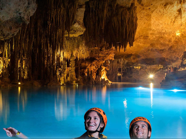 Explore Riviera Maya’s glowing jungle at Xplor Fuego with fire-lit zip-lines, cave rivers, raft tours and the Toboganxote slide. This all-inclusive adventure includes a hearty buffet dinner, unlimited drinks and convenient roundtrip hotel transfers.