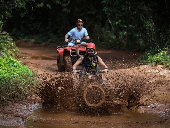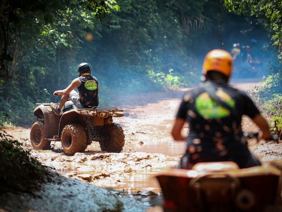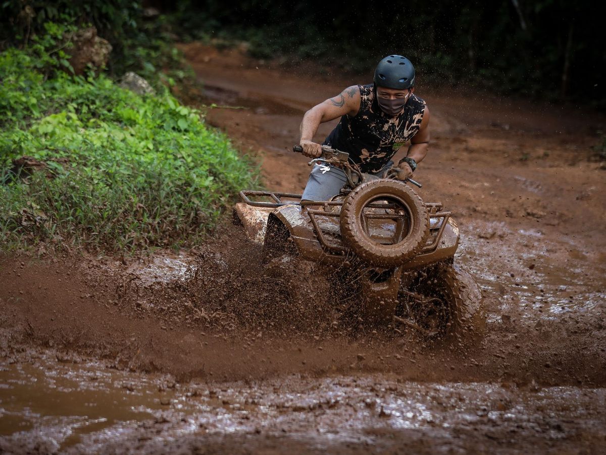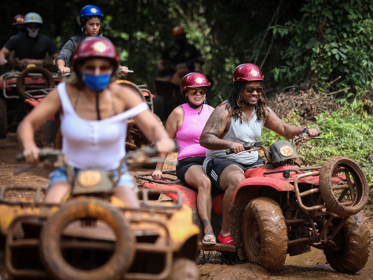 Experience the thrill of a Cancun ATV jungle tour with ziplines, a natural cenote swim, and interactive bridges. Ride through Mexico’s rainforest, then enjoy a taco snack and tequila tasting. Includes roundtrip transportation and bilingual guides.