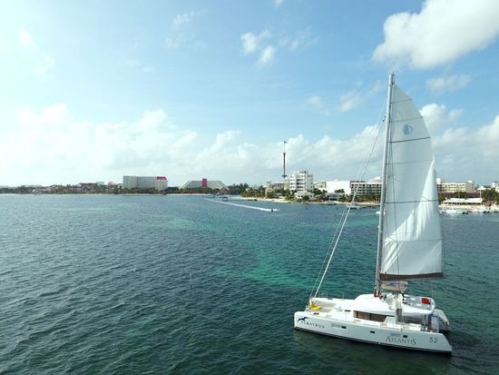 Catamarans sailing to Isla Mujeres