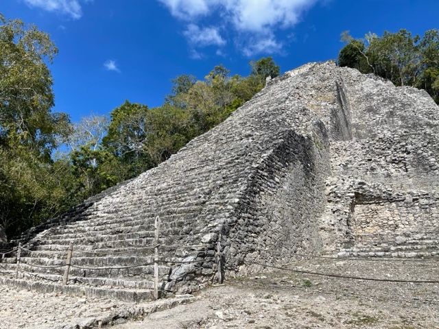 As for the Cobá ruins, we explored them by bicycle. Riding a bike to the scattered ruins on the site was refreshing and sparked my sense of adventure. The famous large pyramid was even bigger than I had imagined, and I was a bit moved by it. I was able to sit on a nearby log for about ten minutes and soak in the view in front of me.