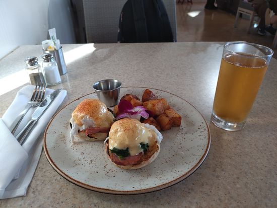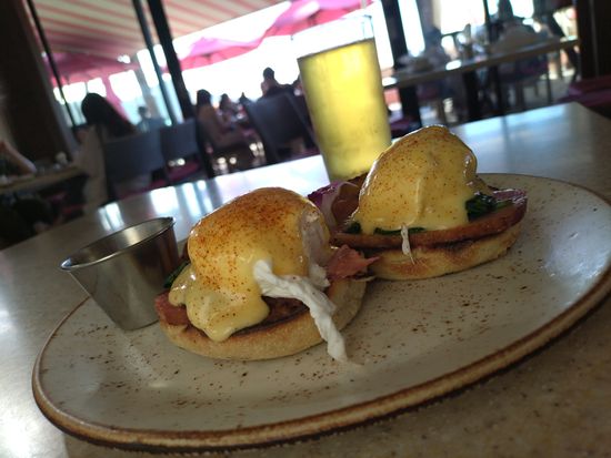 8時ごろお店に伺うと満席なのか何組か入り口で待ってました。受付でチケットを渡すと20〜30分待ちと言われましたが15分ほどで名前を呼ばれました。室内側の席に案内されメニューを渡されます。注文して5分ほどで料理がきました。おしゃれな朝食でおいしかったです。食べ終わったらそのまま店を出ていくだけなので便利でした。