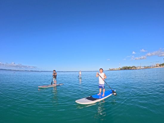 ジミーさんがパドルの操作方法、海に落ちたときの板への上がり方など教えてくれたため、安心して体験できました。
