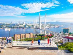 "日本に一番近いヨーロッパ"ウラジオストクで見たいもの・したいことをぎゅっと凝縮した1日ツアー。鷲の巣展望台やウラジオストク駅周辺の必見スポットを巡ったら、午後はルースキー島へご案内します。2017年に完成したばかりの沿海地方水族館を訪れるプランもご用意!