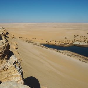 カイロから片道2時間+砂漠内ツアー4時間+食事1時間な感じでした。私と妻と日本語ガイドさんとドライバーさんの4人でランドクルーザーに乗っての日帰りツアーでした。前日にツアーでピラミッドや博物館等の観光をしていたので、この志向の違ったアドベンチャーツアーも大変楽しい時間を過ごすことが出来ました。360度グルリと砂漠の絶景や車で砂漠内を爆走(安全運転ですよ)等の日常生活に無い経験が出来た事、親切で詳しく説明してくれたガイドさんとドライバーさんに感謝、大満足のツアーでした。写真のように砂漠の岩山にガンガン車で登り、崖っぷちからオアシス(湖)を覗き込む体験はなかなか出来ないと思いますよ。