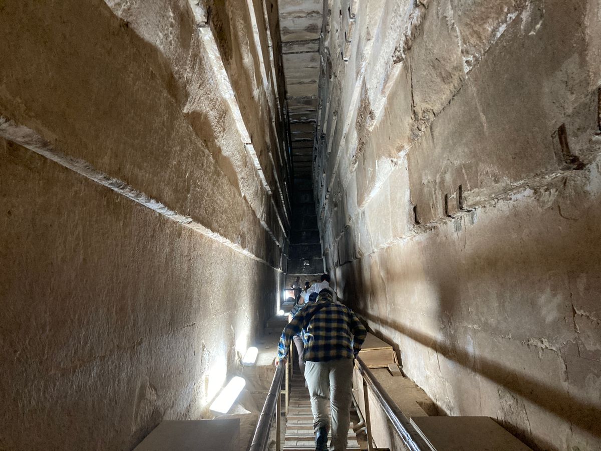 このツアーはおすすめです。午前中に行ったダハシュールとサッカラのピラミッドは、イメージ通りの砂漠の中にピラミッドがポツンと立っている感じで、20分くらいかけてピラミッドを一周すればいい写真が撮れます。特に赤のピラミッドは形が綺麗で、日が当たると美しいです。ピラミッドの石が所々崩れていて、修復中の場所も見れて面白かったです。お昼のローカルレストランは清潔で、まず窯でナンのようなエジプトパンを焼くところを見学しました。面白いようにナンが窯の中で膨らんでいき、焼きたては中が空洞で皮が薄くとてもおいしかったです。サラダ、羊肉、鶏肉、牛肉の他にハトを焼いた料理もありました。ギザのピラミッドはクフ王のピラミッドに入場しました。狭い階段をひたすら上がって行きますが、中はとても暑かったです。ギザのピラミッドの周りには道路が走っていて、観光用馬車やロバ、観光客も多いので雰囲気のよい写真は撮りにくかったです。