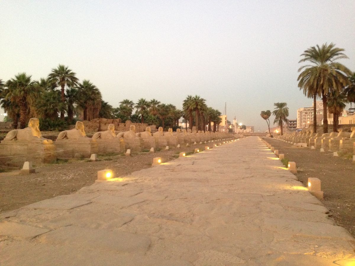 大きさこそカルナック神殿に及びませんが、保存状態が良く、非常にバランスが取れた神殿です。入口にあるオベリクスは1本のみで、もう1本はフランスへの友好の証として寄贈され、パリのコンコルド広場に建っています。この後にパリに行くので感慨深いです。このルクソール神殿とカルナック神殿を結ぶ3kmの道の両側にスフィンクスがずらりと並ぶスフィンクス参道は現在修復中で、数年後に修復が完了する予定とのこと。壮観な眺めになるんでしょうね~。