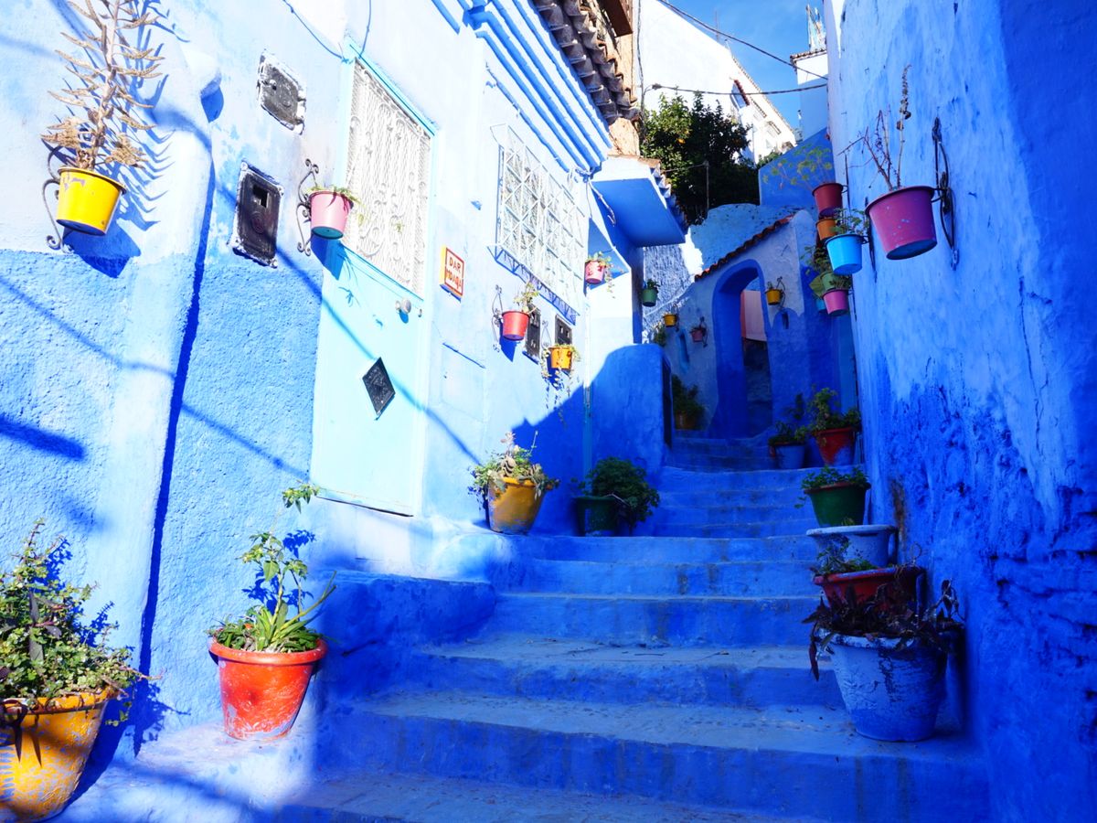 深い海に潜り込んだようなシャウエン、迷宮都市のフェズ
