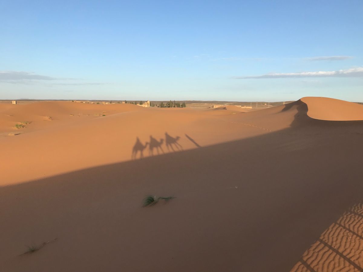 メルズーガでの砂漠体験は必須です!ラクダに跨り砂漠でのトレッキングは意外といい運動になります。翌日は全身筋肉痛でした。砂漠のサンセット、テントでの食事、キャンプファイヤーでのドラムナイト、その後夜の砂漠へ向かい明かりのない砂漠に寝転がり空を仰ぐと満天の星空はこんなに夜空に星があったのかと思わせます。