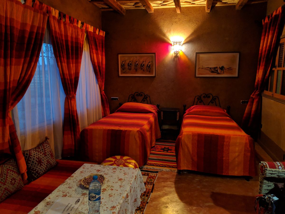 ・メルズーガの砂漠の宿泊ですが、コテージのほうが、コンセントが使えたりするのでそちらのほうがオススメです。