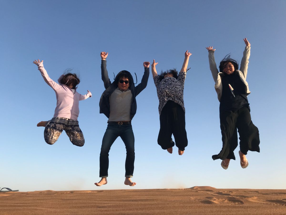 翌朝は砂漠での日の出を見ながら二礼二拍手一礼をして天照大神への参拝。令和に入っての初めての参拝はサハラ砂漠でした!