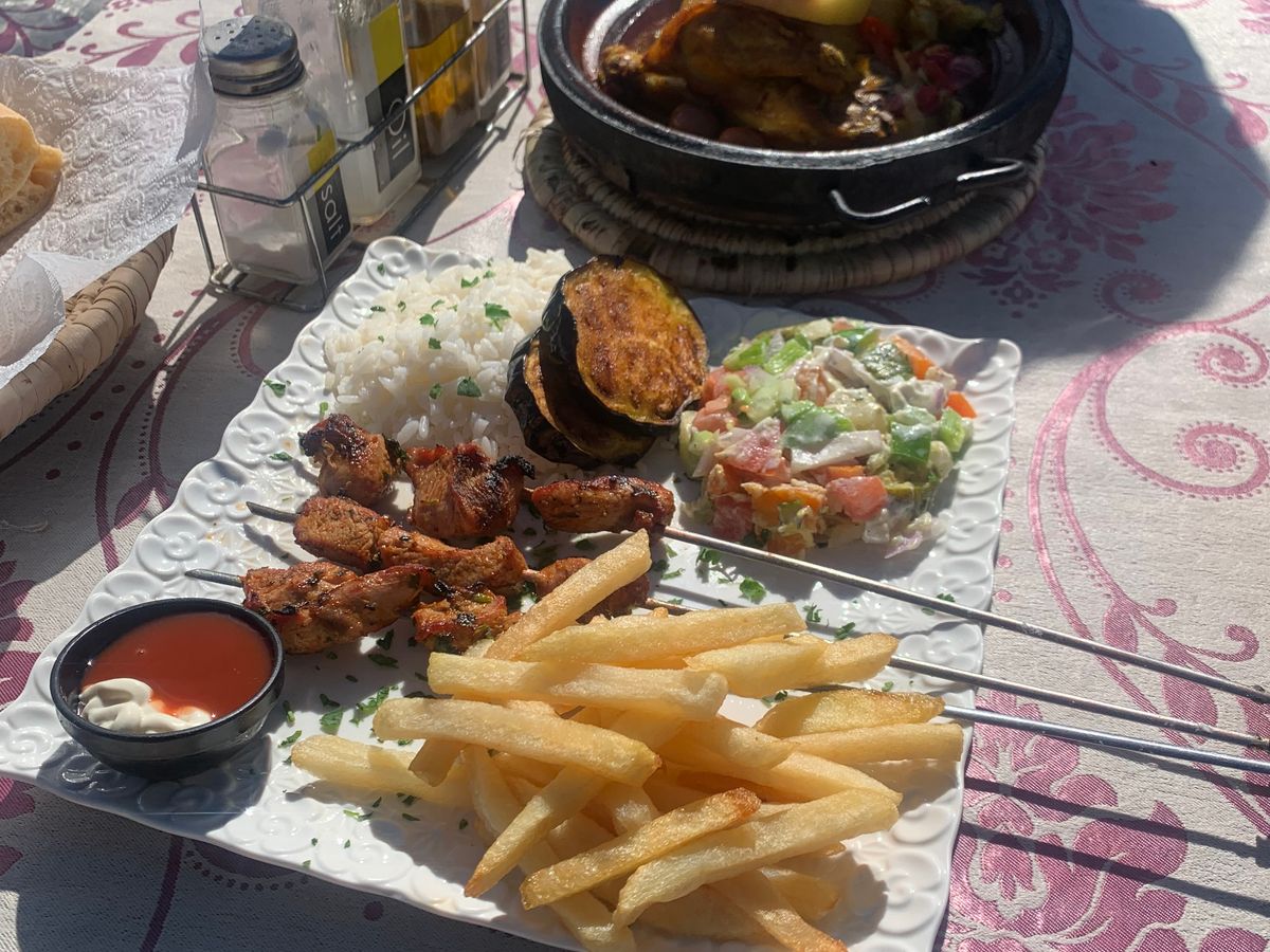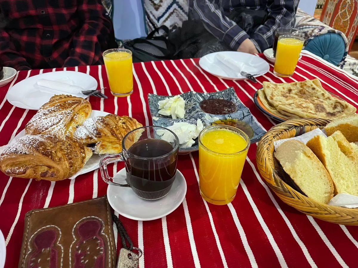 ご飯はタジン多めでした。店によって結構味が違うので楽しいです。どこ行ってもミントティー飲めます。ホテルの朝食はモロッコのパンとクレープ多めです、美味しかったです。
