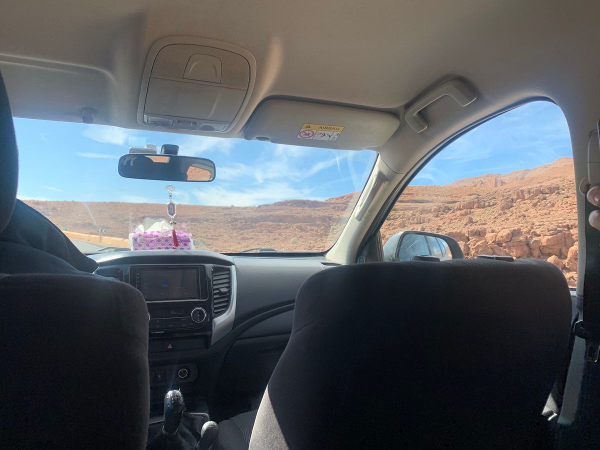 足を伸ばしてリラックスできる車で移動し、車窓からは雄大なモロッコの自然を楽しむことができます。