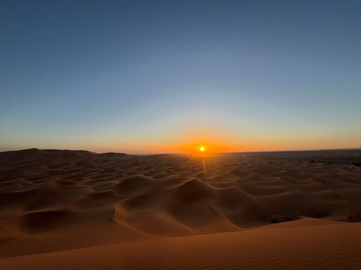 運悪く初日が曇りだったため満点の星空を望むことはできませんでしたが、翌日に見たサハラ砂漠の日の出は圧巻の一言です。