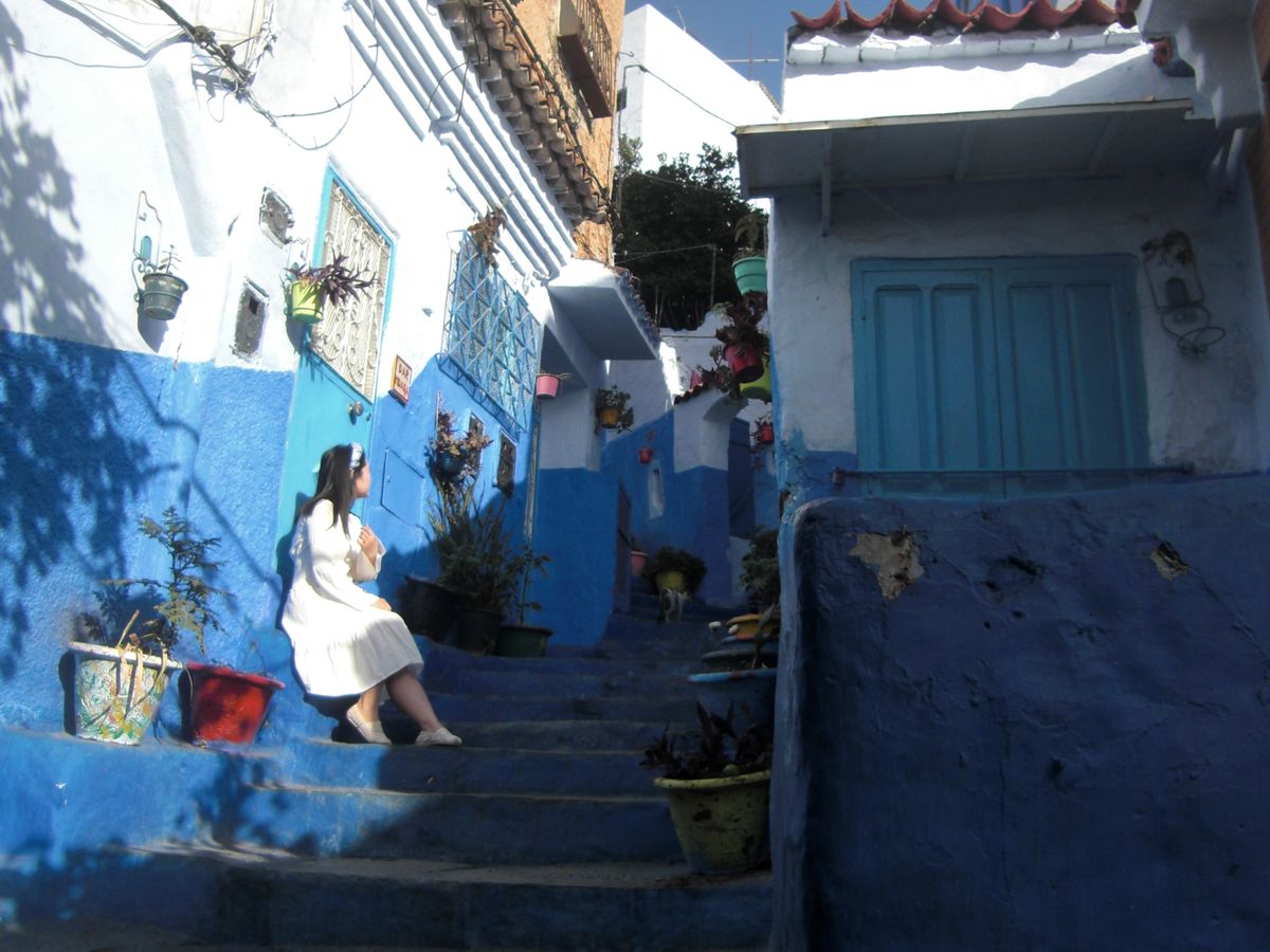 シャウエンの観光時間はほぼゼロでした。なんとか一目見たいと、朝食後、携帯も地図もないまま、写真を見せて、このような場所に行きたいと一か八かタクシーに乗り込みました。タクシーでは、ぼったくられそうになりました。通りすがりの女性が親切な方で案内してくれて、幸運にも1カ所だけ見ることができました。