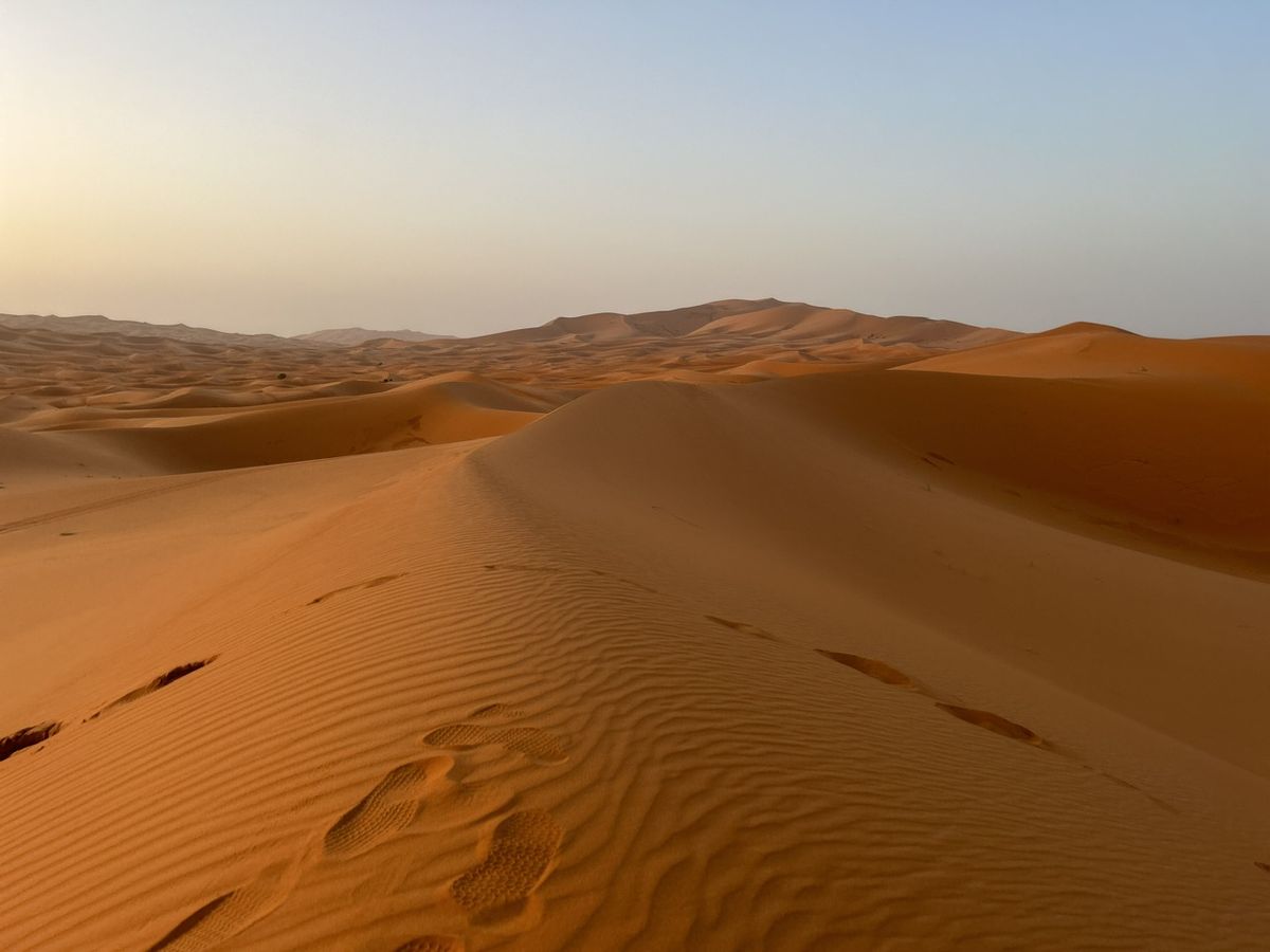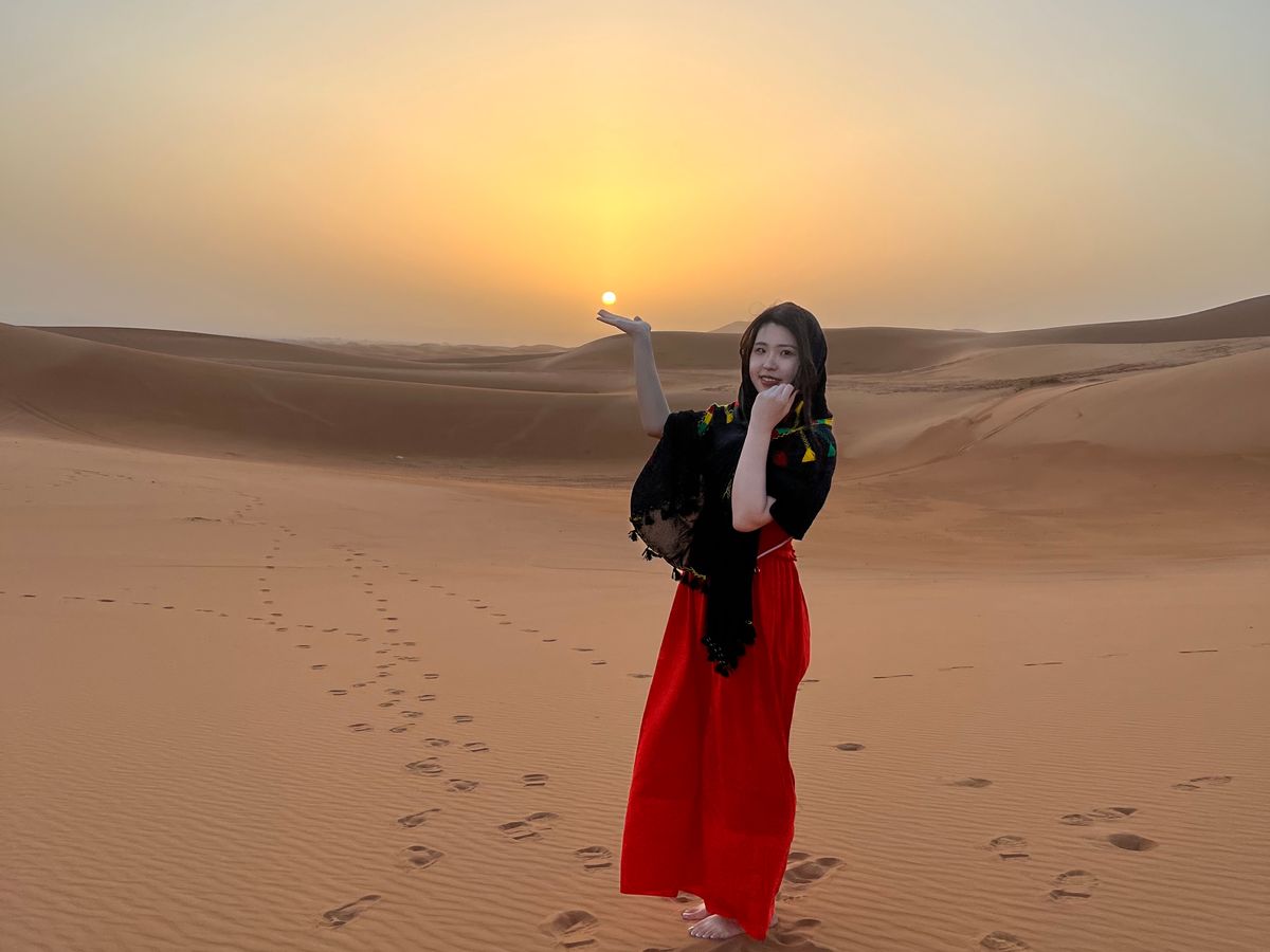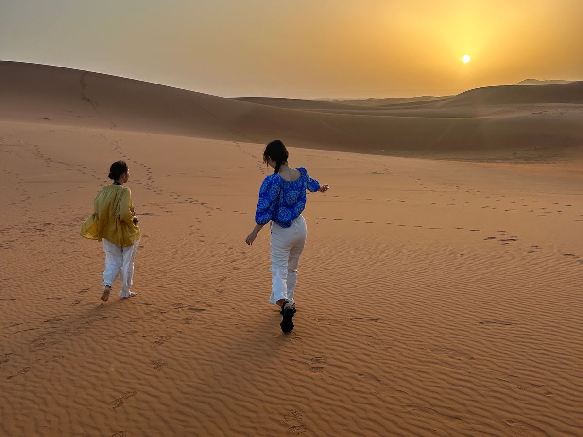 砂漠、羊の赤ちゃん、美味しい食事、たくさんの絶景、綺麗な街並み、アーモンドの花、どれも忘れられない思い出!食事は特にチキンのタジンと焼き羊肉が美味しかったです。オレンジジュースとヨーグルトも!ホテルはシャウエンとフェズが可愛くてすごく良かったです。砂漠のラグジュアリーテントも快適!ワルザザードのホテルだけちょっと残念で、シャワーを浴びると周りまで水浸しで2人とも思い切り滑って転んで危険でした。