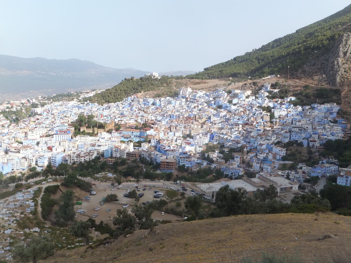 フライト到着にあわせますとシャウエン到着は夜間になるため、車両の入れないメディナ内の宿泊施設でなく、