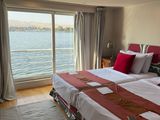 クルーズ船は事前案内と違う船でしたが、グレードアップしてくれたとのこと。理由を聞いて納得。常に川側に停泊する船で、部屋からナイル川を眺められる最高のロケーションでした。