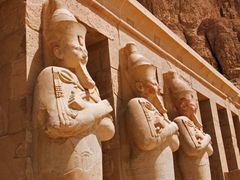 ファラオが亡くなったとき、弔いの儀式が行われていた葬祭殿。崖を切り開いて造られたその壮大なスケールと裏腹に、秀麗な姿から最も神聖な場所として称えられていました。