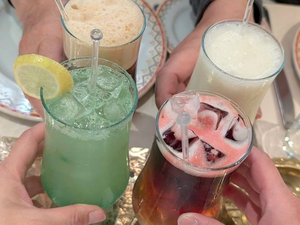11:00 ベルトラに予約をお願いましたが、最後まで予約確認が取れなかったラジュレに行ってみました。結局予約の有無は確認出来なかったのですが、早いせいなのか空いていたので、奥の席に座り早めのランチを頂きました。混雑を予想していただけに拍子抜けでした。お客さんの入れ替わりはありましたが、終始混むことはありませんでした。メニューの有無を全て確認した訳ではありませんが、少なくともアフタヌーンティーセット、ローズラテ、抹茶ラテはありませんでした。ラジュレクラブサンド、ミニバーガー(三個入り)、ドバイチョコフレンチトーストをシェアし、紅茶(イングリッシュブレックファースト、アールグレイの二種のみ)、カップチーノをオーダーし、いずれも美味しく頂きました。予想はしていましたが、サーブに時間が掛かり、一時間半を超えてしまいました。急ぐ旅ではないので、ゆっくりさせて頂きました。