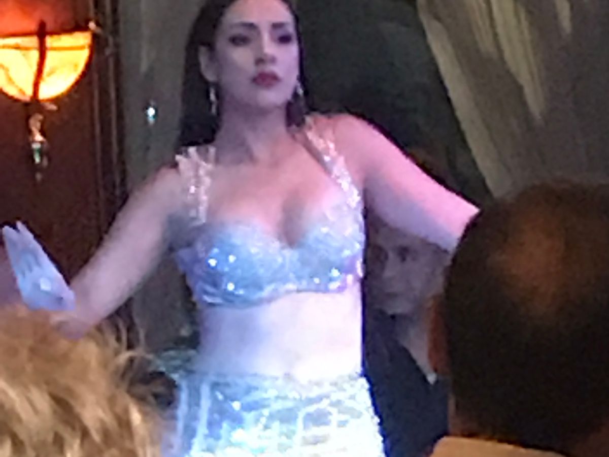 ベリーダンスの女性は各テーブルを回り、眼前でひと踊り。チップを渡すわけでもなく安心して楽しめた。お客は全て白人グループでマナーもよく、ノリノリの踊りを披露する中、老年カップル達が和やかな雰囲気を醸し出していた。
