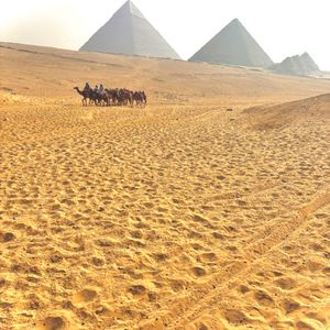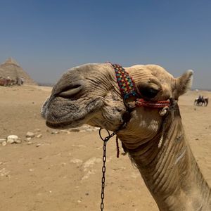 金曜日の参加だったため、イスラム教の休日と重なり午前と午後の予定が入れ替わりました。でも午前のうちにピラミッドを見にいくことができて良かったです!ピラミッド内部は蒸し風呂状態で、外気温が上がり内部にいる人数が増えるとより暑くなります。なるべく早い時間に行くのがベストだそうです。水分補給や脱ぎ着しやすい服装をおすすめします。ラクダのオプションはその場で追加してもらい、$20/人+チップが必要でした。日本の鳥取砂丘にいるラクダとは種類が違うようで、良い写真も撮ってもらえ大満足です。