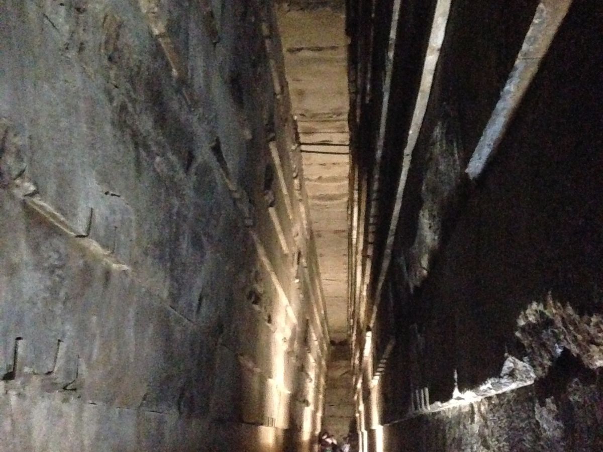 ピラミッド脇の「メナ・ハウス・ホテル」に宿泊したので、ホテルの部屋からピラミッドの夕陽と朝日は堪能していましたが、満を持してピラミッドを訪れます。厳しい人数制限があり、なかなか内部に入ることができない一番大きいクフ王のピラミッドですが、観光客が少ないこともあり、何と入ることが出来ました!内部は、暗く・狭く・暑い...。急勾配の通路をひたすら進むと、ピラミッド内部の棺のある空間へ。気分は「世界ふしぎ発見」のミステリーハンターです。このクフ王のピラミッド内部に入るには追加料金(200エジプトポンド)が必要ですが、絶対に入る価値ありです!