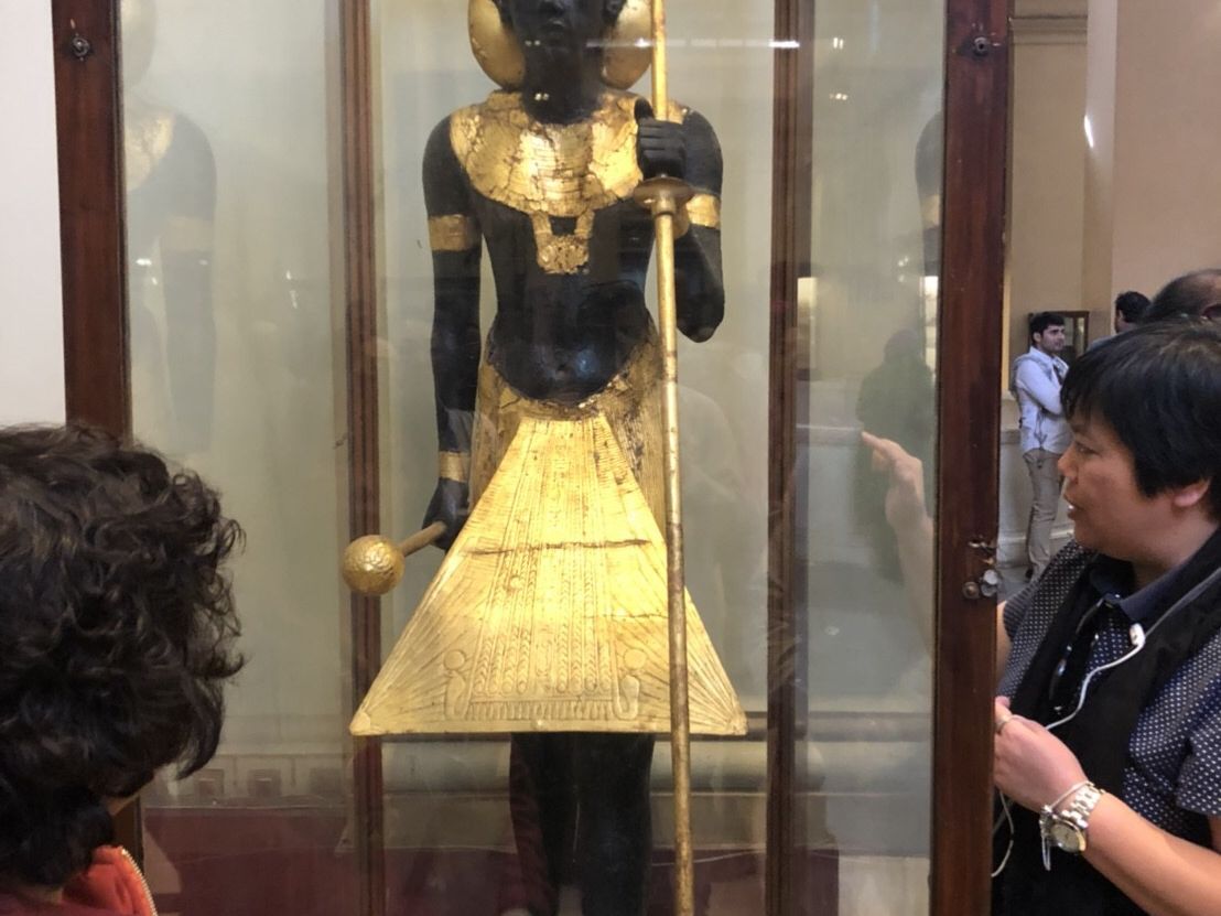 とにかく目的は、ツタンカーメンの黄金のマスク。対面した時は「お~!!!」と感激しましたが、マスクだけでなく棺も黄金、何ならサンダルまで(!)あらゆるものが黄金・黄金・黄金。あと黄金ではありませんが、ツタンカーメンのコンドームもありました。興味深いです...。エジプト考古学博物館にはツタンカーメン関連の5000点を含む、60万点の所蔵品があるとのことで、分かりやすく日本語で説明をしていただき、本当に満足しました。説明なしでは殆ど理解できなかったのではないかと思います。