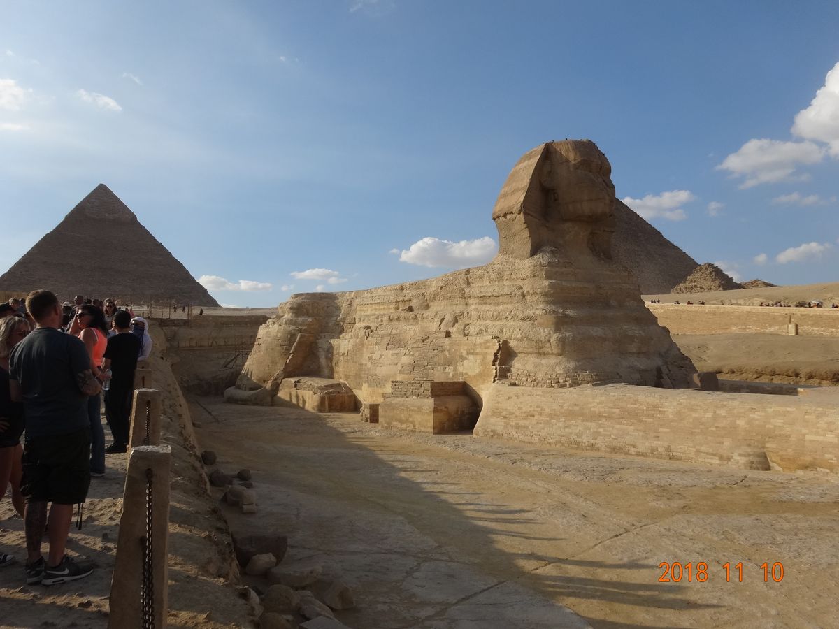 それからスフィンクスと河岸神殿を見てこの日の観光は終わり、ホテルは目の前のル・メリディアンでしたので、そこで降ろしていただきました。ガイドのエイド(?)さんは日本語不自由なく話せて、色々と教えていただき良かったです。ただ忘れていましたが太陽の船もすぐそこだったので見てみたかった…。またもう少しピラミッドエリアで自由時間欲しかったかなと今になって思いますが、1年経ってもまだ鮮明に覚えているということは、やっぱり一生に一度はピラミッド見ておくべきですよね。このツアーはコンパクトでぴったりだと思います。