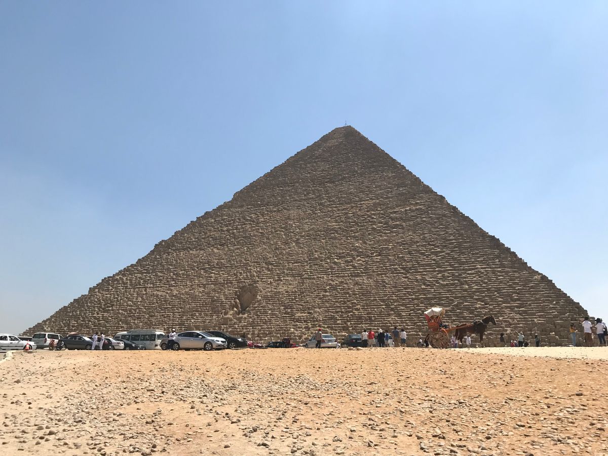 このツアーはおすすめです。午前中に行ったダハシュールとサッカラのピラミッドは、イメージ通りの砂漠の中にピラミッドがポツンと立っている感じで、20分くらいかけてピラミッドを一周すればいい写真が撮れます。特に赤のピラミッドは形が綺麗で、日が当たると美しいです。ピラミッドの石が所々崩れていて、修復中の場所も見れて面白かったです。お昼のローカルレストランは清潔で、まず窯でナンのようなエジプトパンを焼くところを見学しました。面白いようにナンが窯の中で膨らんでいき、焼きたては中が空洞で皮が薄くとてもおいしかったです。サラダ、羊肉、鶏肉、牛肉の他にハトを焼いた料理もありました。ギザのピラミッドはクフ王のピラミッドに入場しました。狭い階段をひたすら上がって行きますが、中はとても暑かったです。ギザのピラミッドの周りには道路が走っていて、観光用馬車やロバ、観光客も多いので雰囲気のよい写真は撮りにくかったです。