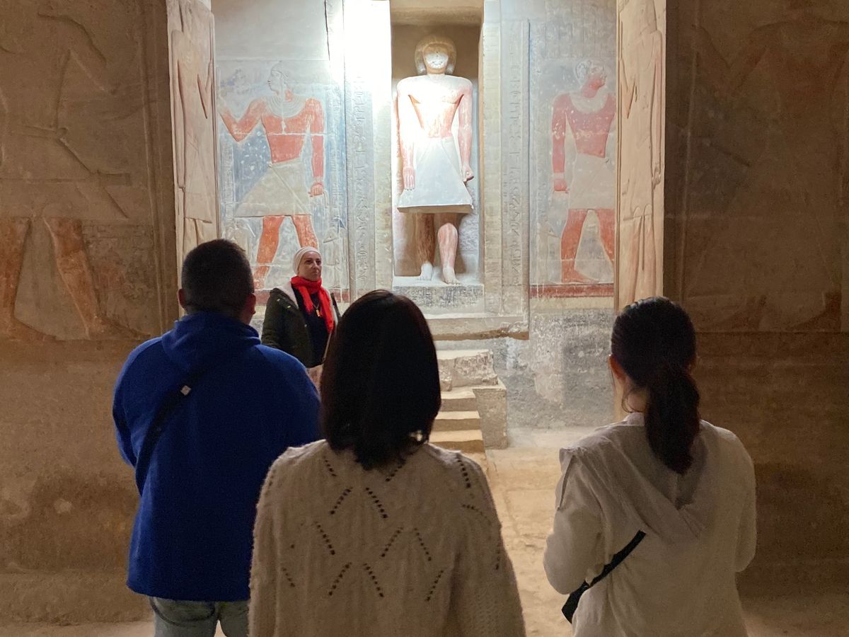 ギザからは少し離れた3か所のピラミッドをめぐるツアーに参加しました。1名での参加でしたが、ドライバ―さん(英語のみ)、日本語ガイドさんのエスコートは完璧でした。特にガイドさんは日本人の案内を長くされている方で、ピラミッドはもちろんのこと、古代王朝の歴史や現在のエジプトやイスラム教に至るまで質問に丁寧に答えていただき、大満足の半日ツアーでした。