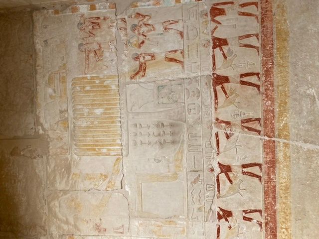 ・ カゲムニの墓で有名な「子豚に口移しで乳を飲ませる」レリーフの位置を尋ねたところ、レリーフが残っていない壁を指して「ここにあったが、修復で取り去られた」と回答した。→ 後で自分で見つけましたが、その時には「これは乳ではなく、水を飲ませている」などと言っていました。あり得ません!