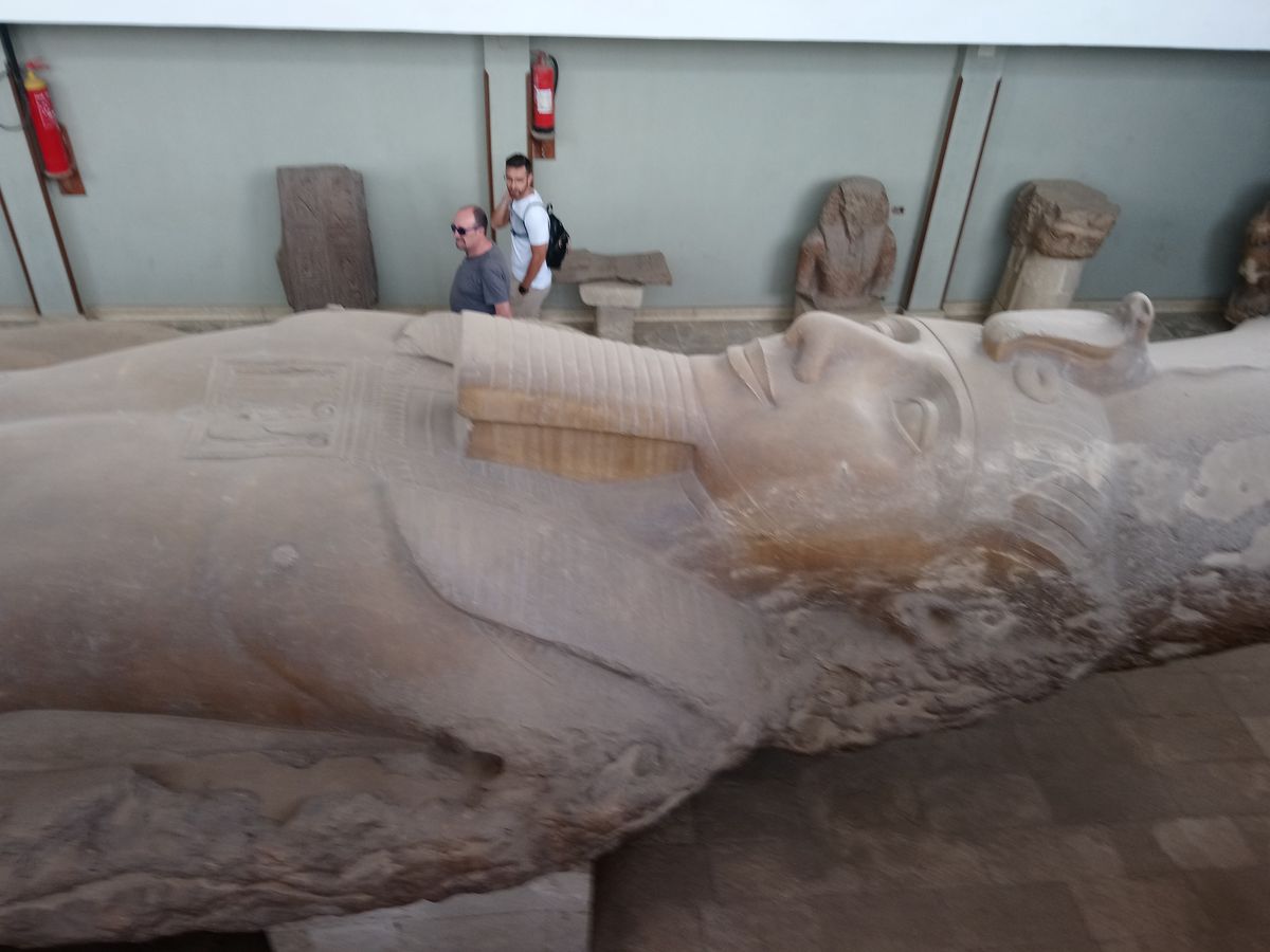 今回の一番大きな目的はギザの三大ピラミッドでしたが、サッカラはピラミッドの周りの施設も残っていて、当時の様子を伺うことができます。つい最近に公開されたという崩れたピラミッドの内部は本当に見事でした。メンフィスのラムセス二世の巨象は80トンもあり、こんな巨大なものをどうやって宮殿の前に二体も設置できたのかと思うと不思議でなりません。
