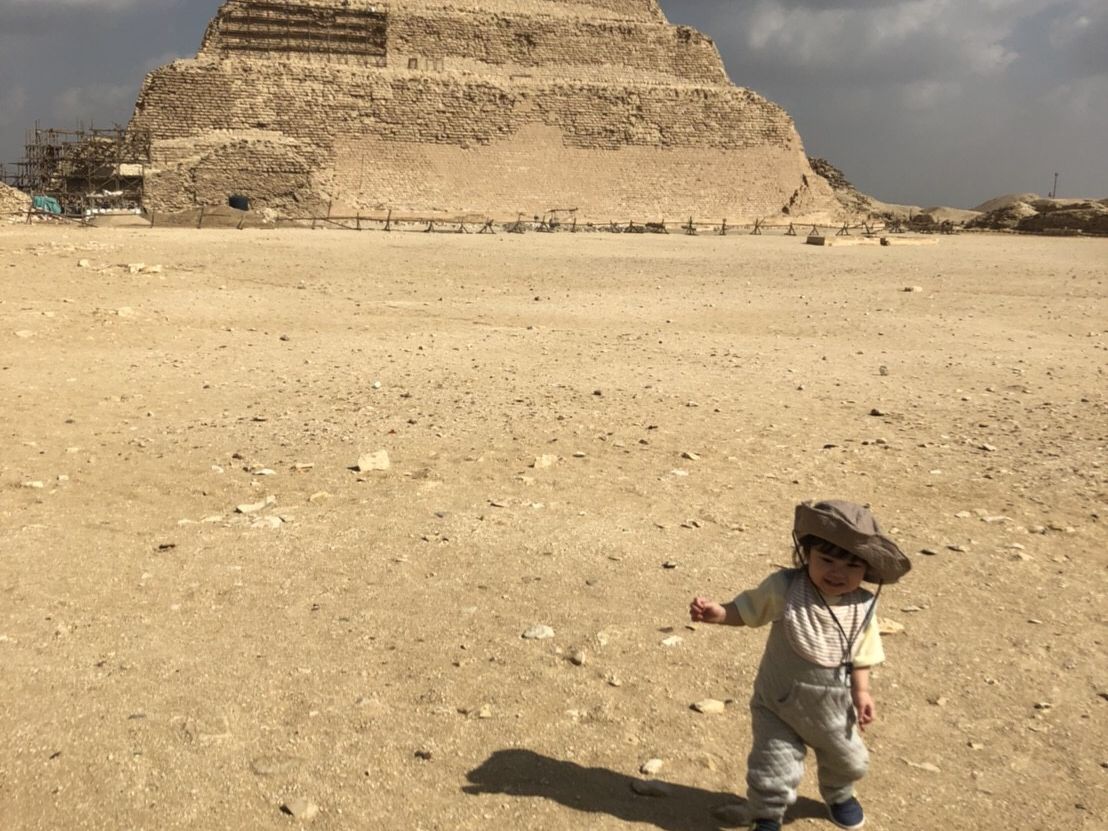 クフ王のピラミッドの中に入りましたが、中は暑く途中中腰になったり、急な階段を登ったりと約10キロの孫を抱っこしての登りはかなりきついものがありましたがいい思い出です