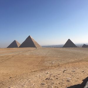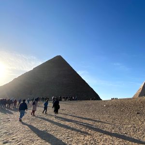 このツアーはおすすめです。午前中に行ったダハシュールとサッカラのピラミッドは、イメージ通りの砂漠の中にピラミッドがポツンと立っている感じで、20分くらいかけてピラミッドを一周すればいい写真が撮れます。特に赤のピラミッドは形が綺麗で、日が当たると美しいです。ピラミッドの石が所々崩れていて、修復中の場所も見れて面白かったです。お昼のローカルレストランは清潔で、まず窯でナンのようなエジプトパンを焼くところを見学しました。面白いようにナンが窯の中で膨らんでいき、焼きたては中が空洞で皮が薄くとてもおいしかったです。サラダ、羊肉、鶏肉、牛肉の他にハトを焼いた料理もありました。ギザのピラミッドはクフ王のピラミッドに入場しました。狭い階段をひたすら上がって行きますが、中はとても暑かったです。ギザのピラミッドの周りには道路が走っていて、観光用馬車やロバ、観光客も多いので雰囲気のよい写真は撮りにくかったです。