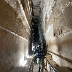 ・ピラミッド内部は薄暗い狭い上り通路を双方向で人が出入りしますので