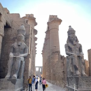 エジプトのカルナック神殿(Karnak Temple)は、ルクソールの東岸に位置する巨大な神殿複合体です。古代エジプトの最も偉大な神殿の一つであり、ファラオたちによって数世紀にわたって建設・拡張されました。カルナック神殿はアモン神を中心に祭祀され、その巨大な柱廊や壮麗な神殿建築は、古代エジプトの建築技術と芸術の傑作として知られています。神殿内部には多くの彫刻やレリーフがあり、古代エジプトの宗教的な信仰や歴史に関する貴重な情報が残されています。 一方、ルクソール神殿(Luxor Temple)は、カルナック神殿と同様にルクソールの東岸に位置し、古代エジプトの新王国時代に建設された神殿です。アメン神を祭る神殿として知られており、ファラオたちによって建設・拡張されました。ルクソール神殿は、その美しい彫刻や柱廊、神殿内部の神聖な空間などが特徴であり、古代エジプトの宗教的な儀式や祭祀が行われた場所として重要な役割を果たしていました。 これらの神殿は、古代エジプトの宗教と歴史に関する貴重な遺産であり、その壮大な建築や彫刻は訪れる人々を魅了しています。