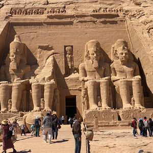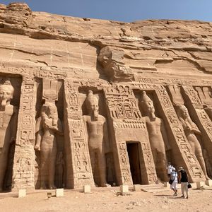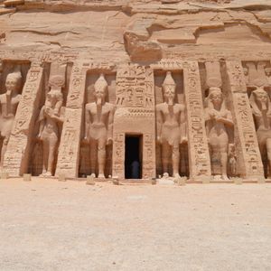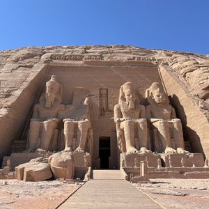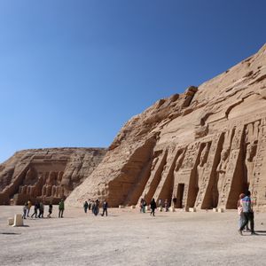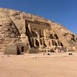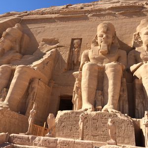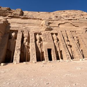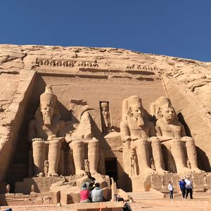 アブシンベル神殿(Abu Simbel Temple)は、エジプトのアスワンに位置する古代神殿で、ファラオ・ラムセス2世によって建設されました。この神殿は、ナイル川の西岸に位置し、その壮大な彫刻や建築は古代エジプトの最も印象的な遺産の一つとされています。 アブシンベル神殿は、巨大な岩山をくりぬいて作られた巨大な神殿であり、その最も有名な特徴は、4つの巨大な石造りのファラオ像が正面に配置されていることです。これらの巨大な像は、ラムセス2世の偉業を称えるものであり、その威厳ある姿は訪れる者を圧倒します。 また太陽の光が特定の日に神殿内部に差し込むことで知られており、その日はラムセス2世の誕生日や戴冠式を祝う日とされています。この太陽の現象は、古代エジプトの天文学的な知識と建築技術の高さを示すものとして注目されています。 その壮大なスケールと美しい彫刻、そして太陽の神秘的な現象によって、世界中の観光客や歴史愛好家を魅了しています。エジプトを訪れる際には、アブシンベル神殿を訪れて、古代エジプトの神秘と歴史を体験してはいかがでしょうか。
