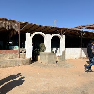 往路は一度トイレ休憩をとります。トイレは砂漠のオアシスのような所で、トイレの入り口にトイレチップの取り立て人のような人がいて、払わないで入ろうとすると、呼び止められます。二人で5エジプトポンドで十分な感じでした。