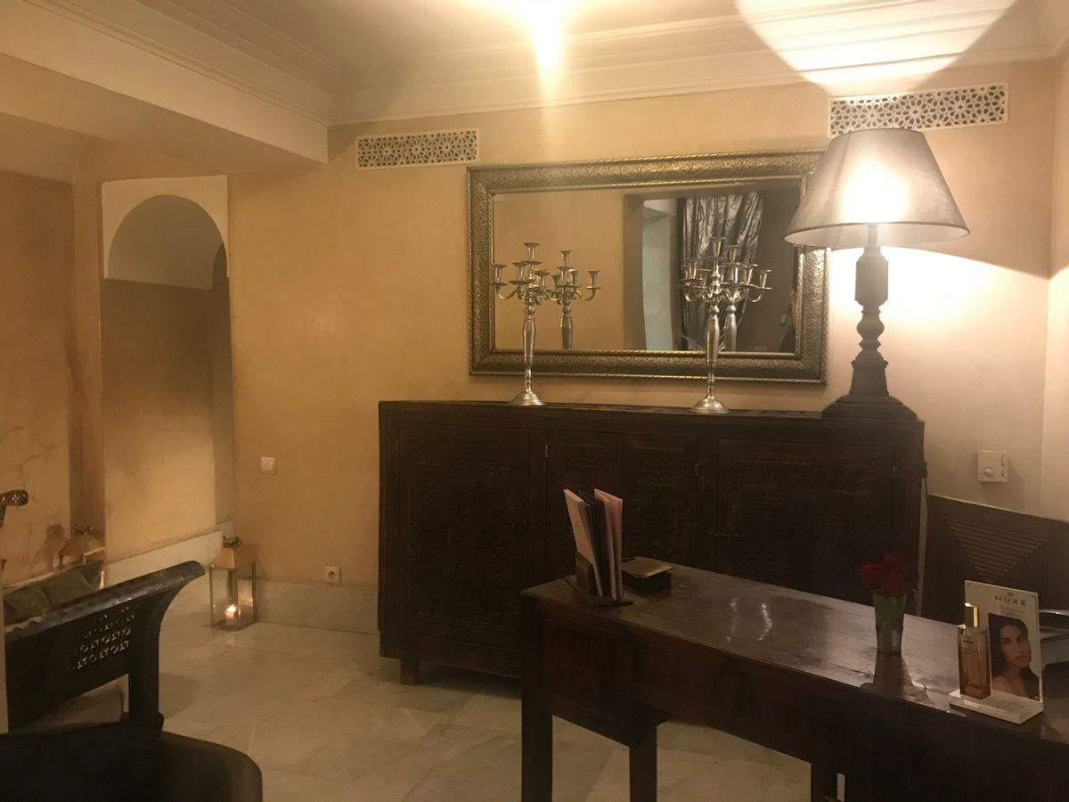 ・1日目のホテルはモロッコの古民家風建物でした。外観では大丈夫か?という雰囲気ですが、内観は綺麗で十分満足できる洋館でした。小さい建物で当日の宿泊者は私だけの貸切状態でした。お酒も置いてます。