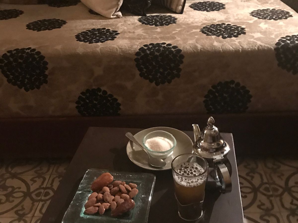 フェズにつく頃には、とっくに日も暮れており、長いドライブのあとに外のレストランを探すのは面倒で、リヤドに夕食を頼んでおいてよかったです。
