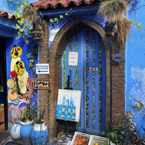 山あいにある青い集落。街の壁、家のドア、フェンスなどが青く塗られている。塗り方はかなり雑であちこちに色むらが見受けられるがそれがまた良い雰囲気で愛らしい。運よく観光客が少ない通りを見つけられればそこはまさにメルヘンの世界。大都市の喧騒から逃れ肩の力を抜いてのんびり散歩しながら街をぐるり。幸せなひとときであった。