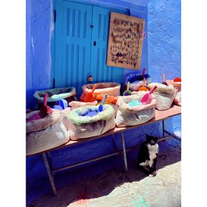 フェズから車で片道3時間ほどの街。シャウエン現地で過ごせる時間はあまり長くはありませんでしたが(3時間ほどだったと思います)、それでも十分満足できる場所でした。猫がたくさんいてかわいかったです!