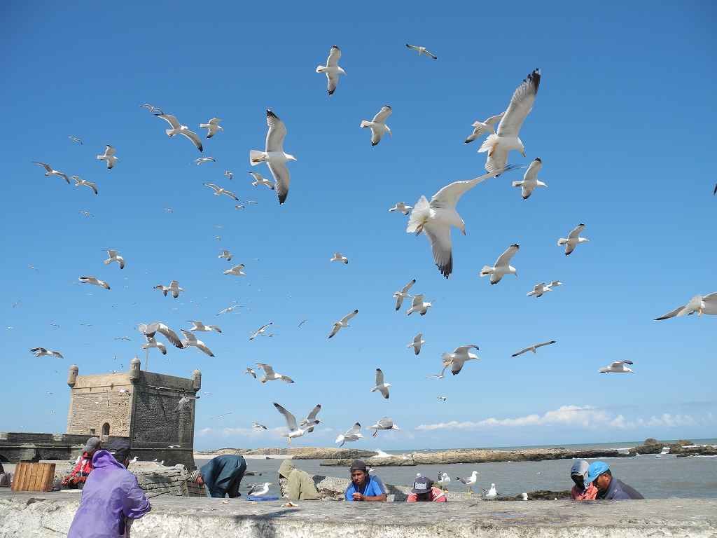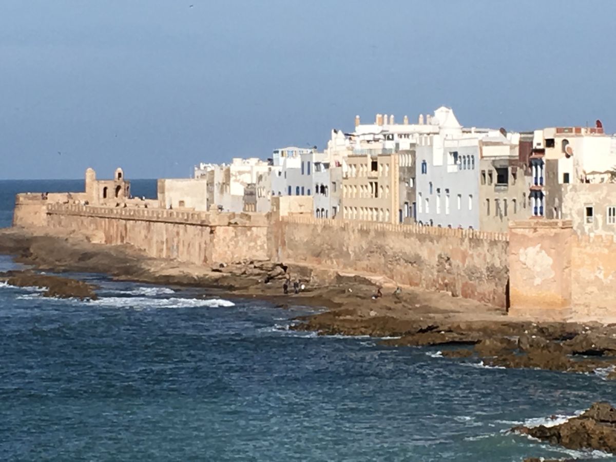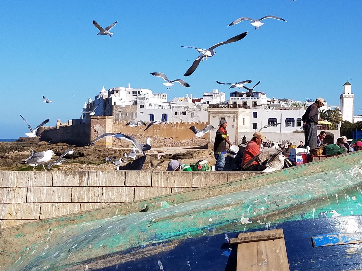 世界遺産でとにかくきれいな港町ということで参加を決めました。エッサウィラに到着し、車を降りて一番に感じるのは、涼しくて風が気持ち良い!ということです。猛暑のマラケシュから比べると格段に過ごしやすく、別荘がたくさん並んでいる理由も分かります。スカラという絶壁沿いに突き出した城塞に登ることができ、一方にはたくさんの漁船と魚市場、もう一方には白を基調としたエッサウィラの街並みが見えてきれいです。メディナ自体は小さいので観光を楽しむという感じではありませんが、風景を楽しむだけでも十分です。