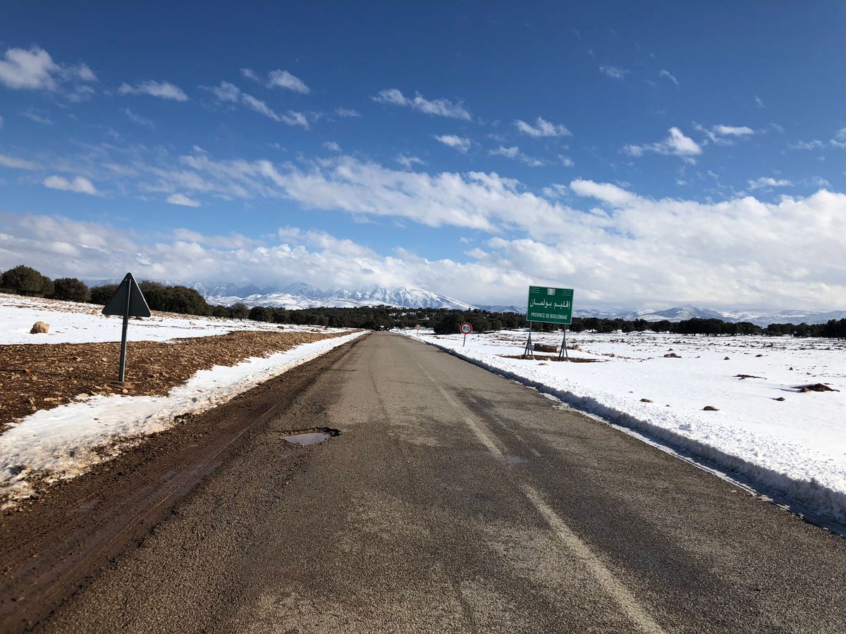 今年は日本と同様にモロッコでも寒波が来てアトラス山脈も大雪だったそうで、3時間程山に入れず近くのガソリンさえで待機でした(CTMやほかのツアーの車も同様)。
