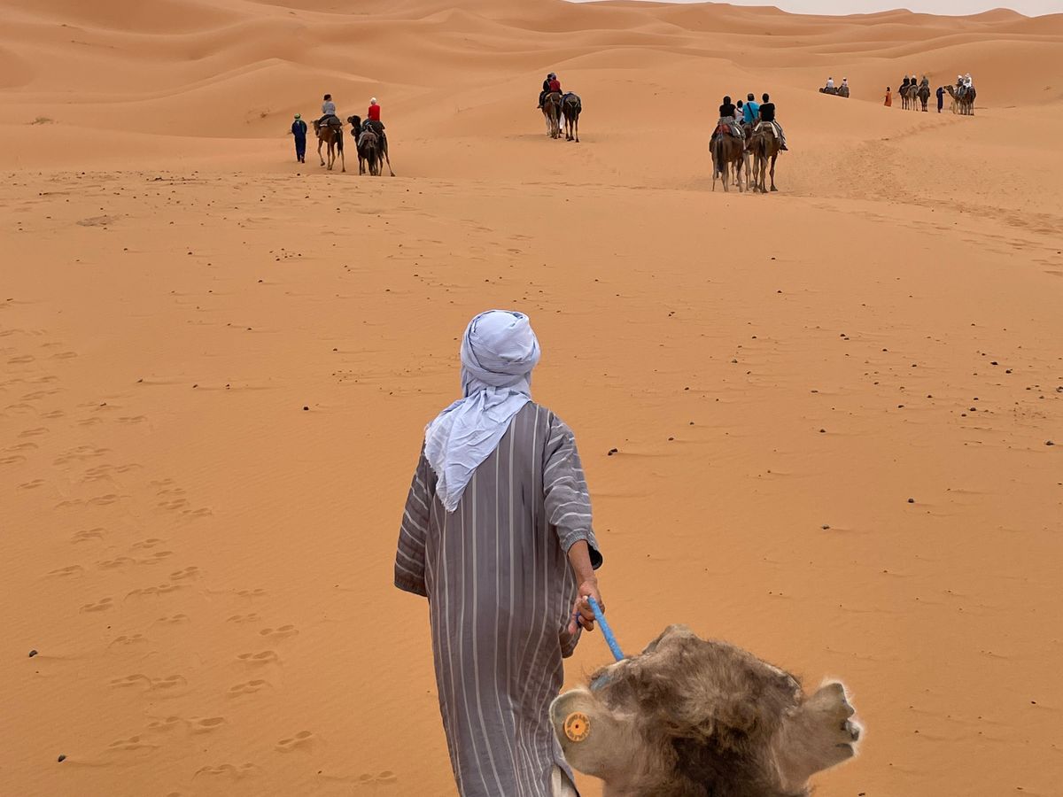 砂漠では、朝日の方がよい(風がある天候からか)からと的確なアドバイスをくれたモハさんのおかげで素晴らしい体験ができました。らくだ引きのモハメッドさんもとっても優しく、砂漠をうまく歩けない私たちの手を引いてくれて、大変だったろうと申し訳なくも思っています。写真もたくさん撮ってもらいました。