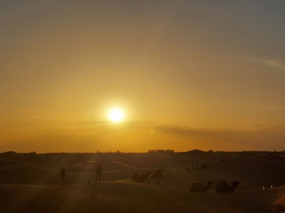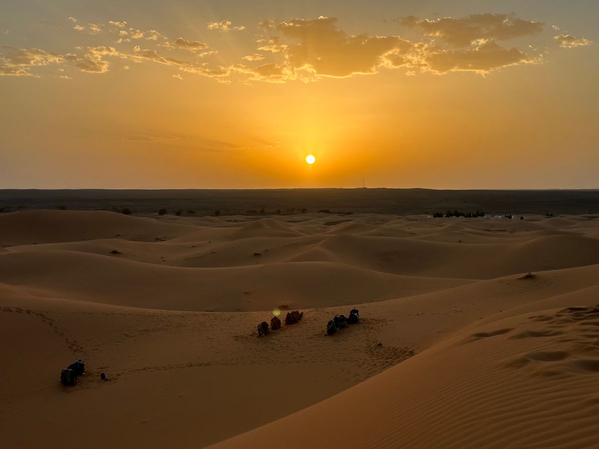 サハラ砂漠でのラクダツアーは今までに体験したことのない異世界に来たようで、景色もラクダ乗りも楽しめた。砂漠からみた夕陽はとても美しかった。テント泊は想像以上に快適で、クーラーやwifi、シャワーもついていた。スタッフの方も優しく、ご飯も美味しくいただけた。