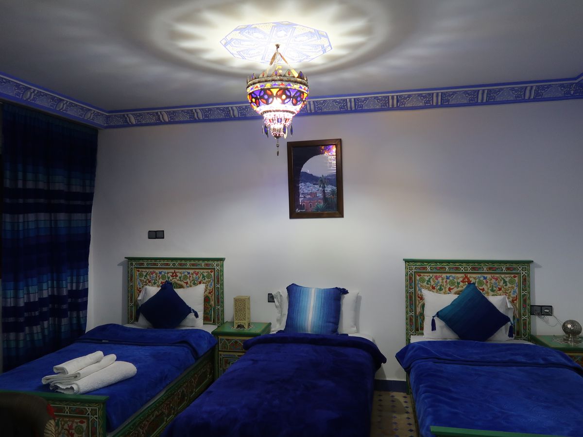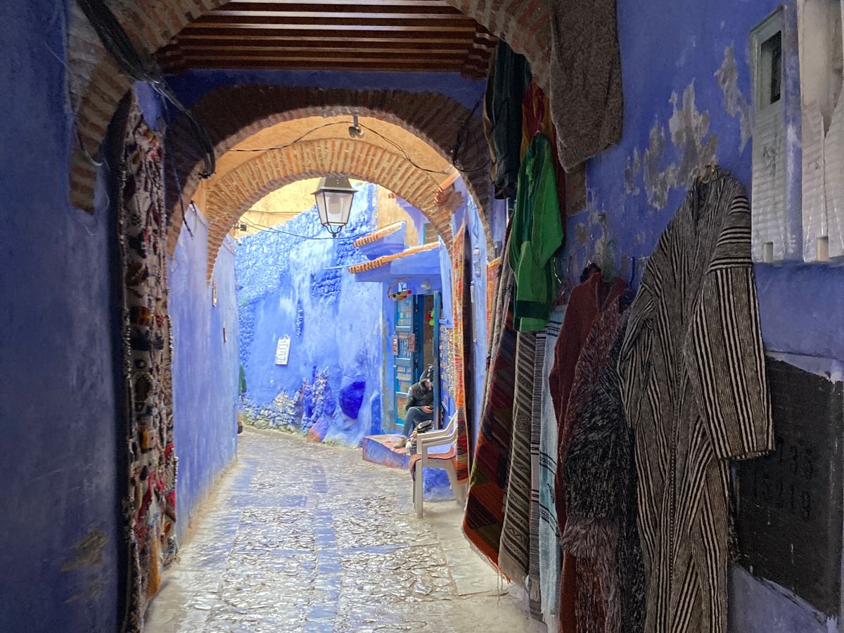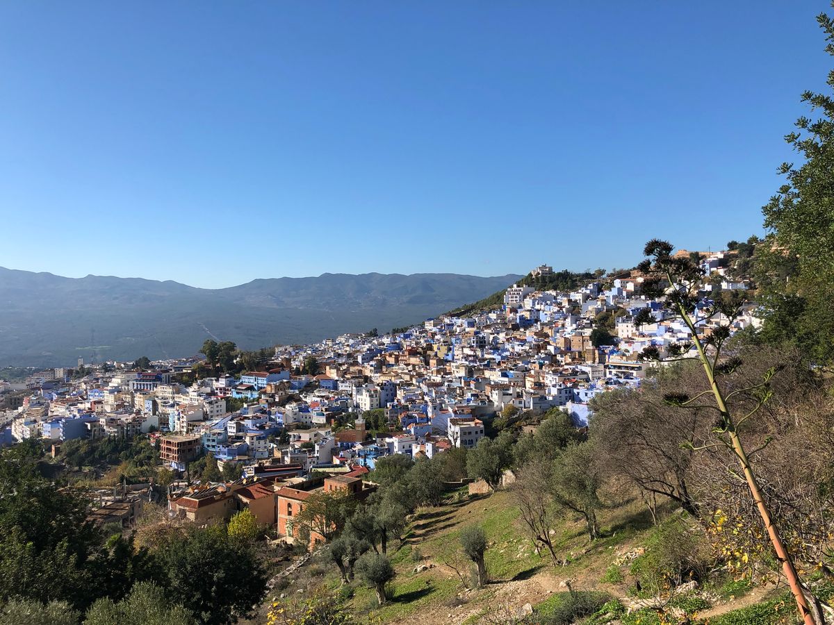 初日から運良く午前中に参加者が揃ったので早めのカサブランカ発となりシャウエンへは明るいうちに到着できました。街外れの宿なので山側から散策なので楽ちん。帰りは登りなんだけど10DHタクシーがあるので問題なし。